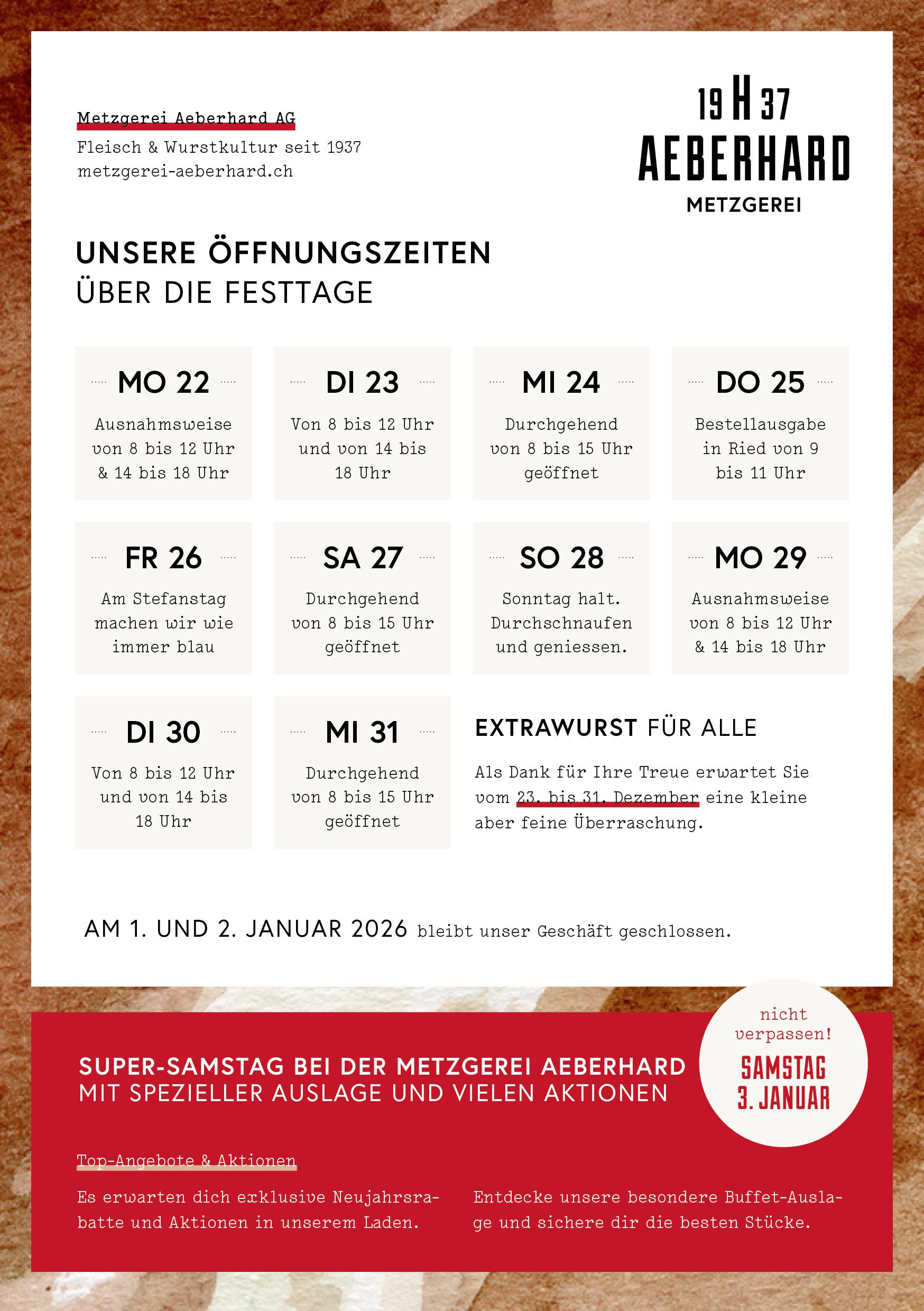 Sie planen einen Event für Ihre Firma, ein Geburtstagsfest oder einen Apéro? Gerne kümmern wir uns um die Zubereitung und Lieferung von Köstlichkeiten aus unserem Produkterepertoire! Am Besten kontaktieren Sie uns unverbindlich für weitere Infos und Angebotslisten!